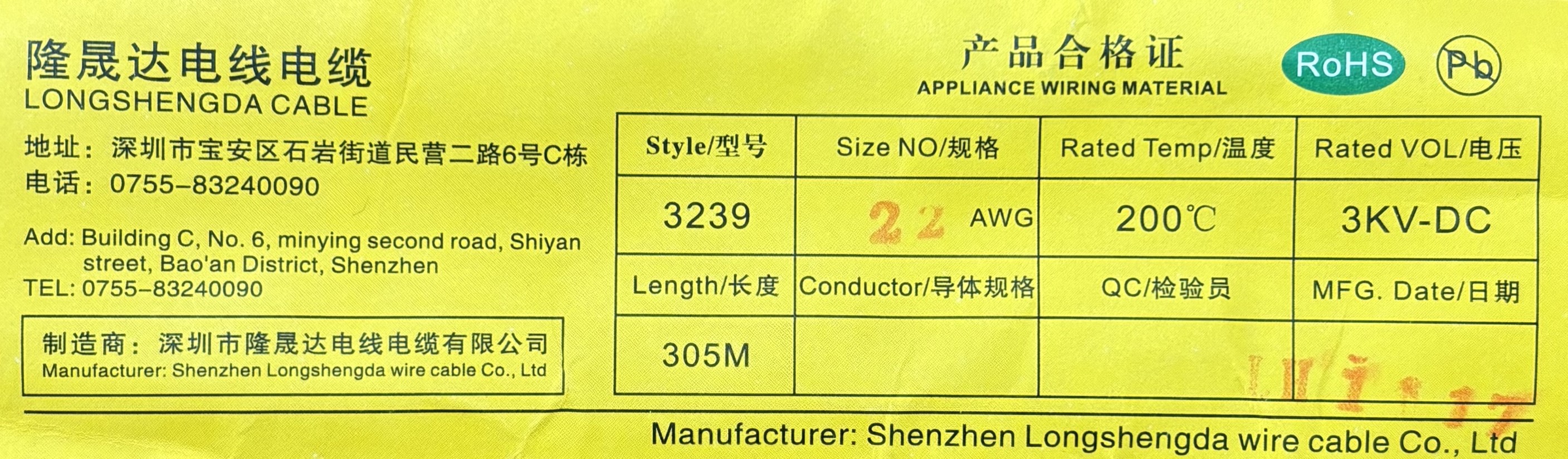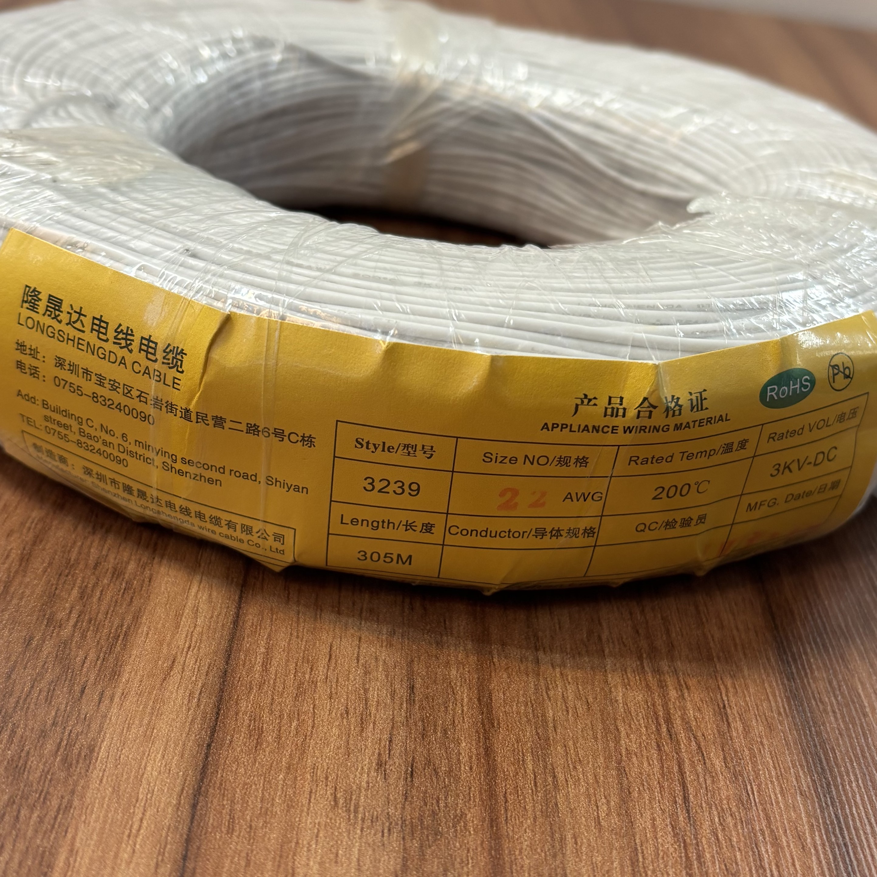 AWG22سیم سایز UL3239جنس: سیلیکونرنگ سفیددمای کاری تا 150–200°C Shunli برند